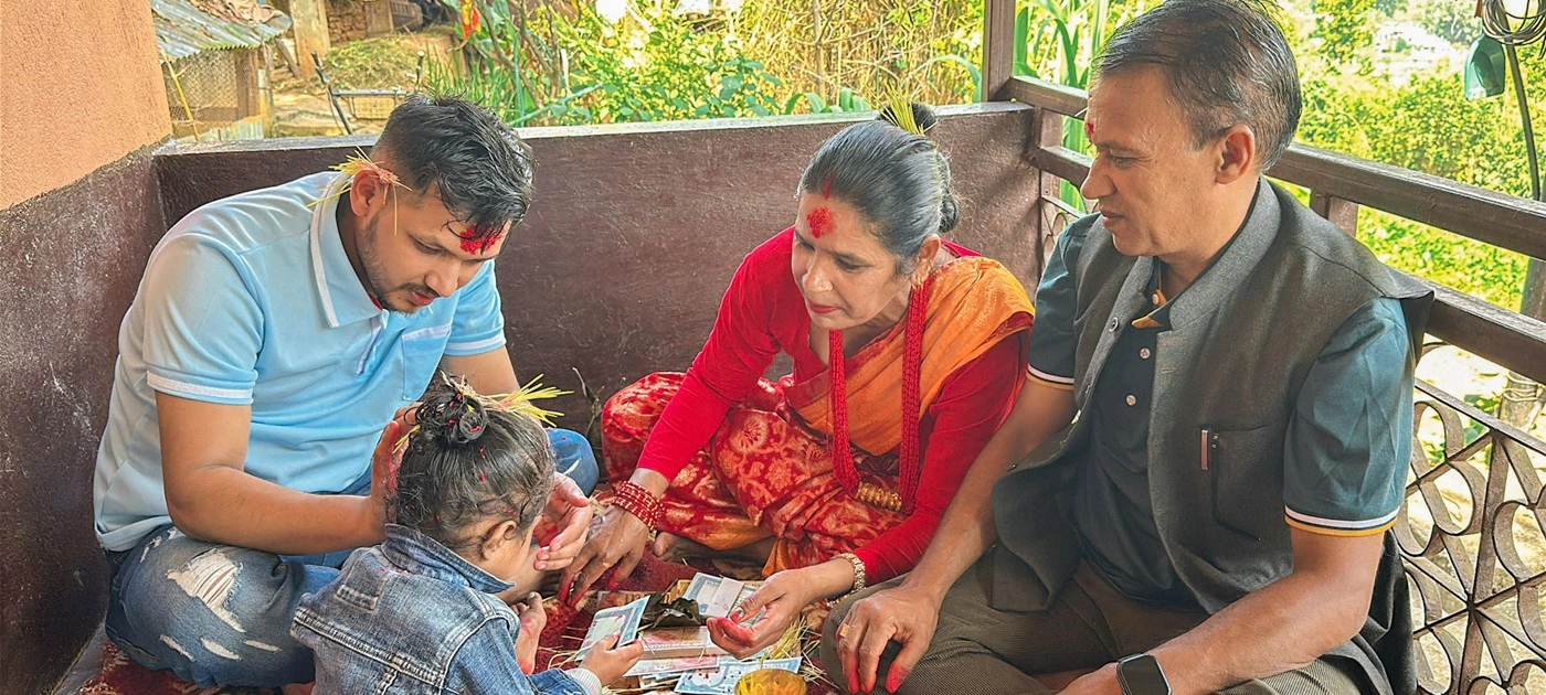 Extended visits to maternal homes, in-laws, and distant relatives. Grand feasts. Tika ceremonies continue.
