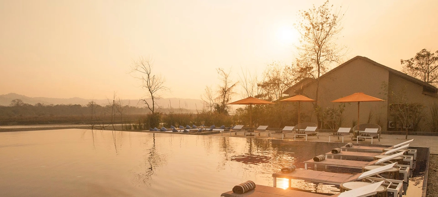 Jagatpur also functions beautifully as a destination wedding venue and corporate retreat location. An outdoor oasis swimming pool, robust event infrastructure, and the ability to host larger gatherings in a jungle setting make it unique in Chitwan. We book it for private wedding groups and corporate retreats that want the wildlife experience without the scale limits of smaller boutique lodges.