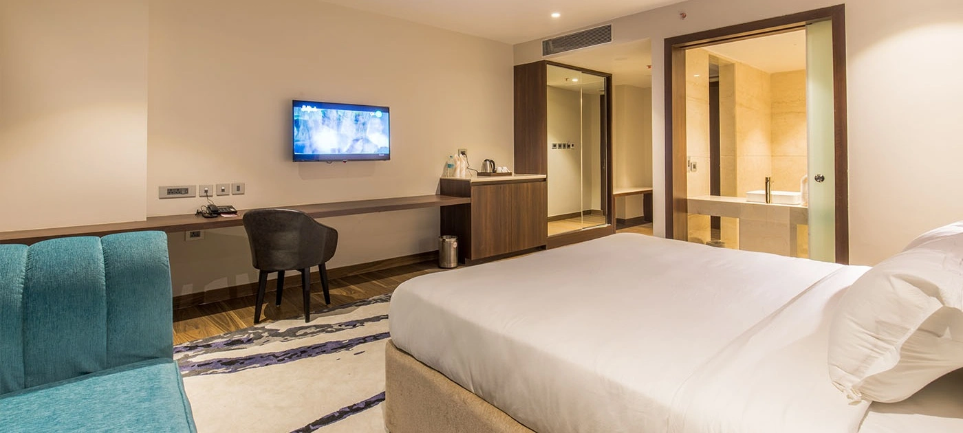 The Deluxe King and Twin rooms set the baseline for luxury with plush bedding, modern climate control, and robust technology integration.